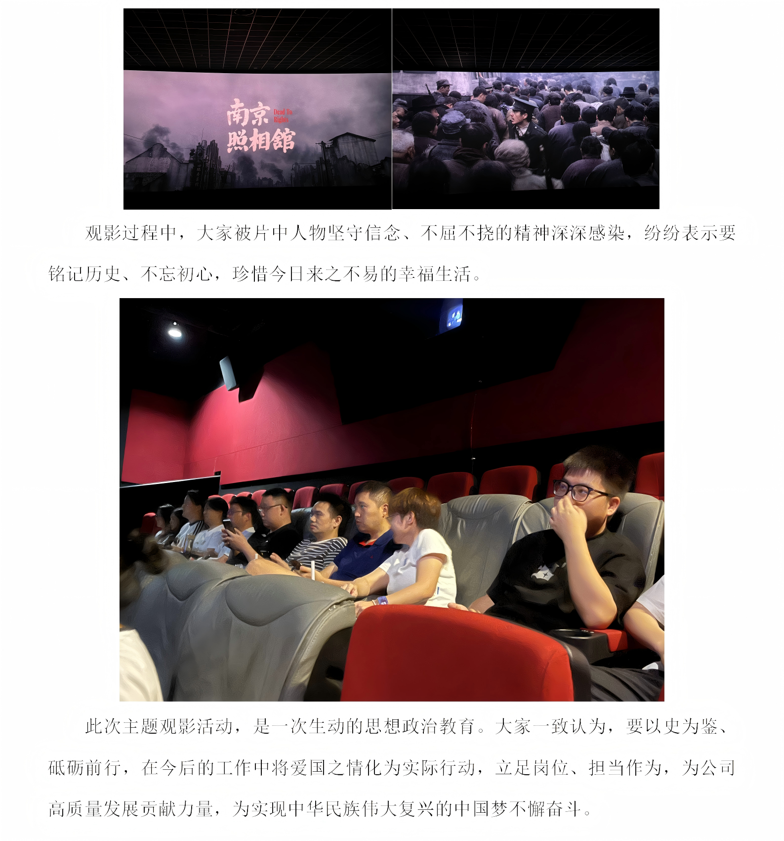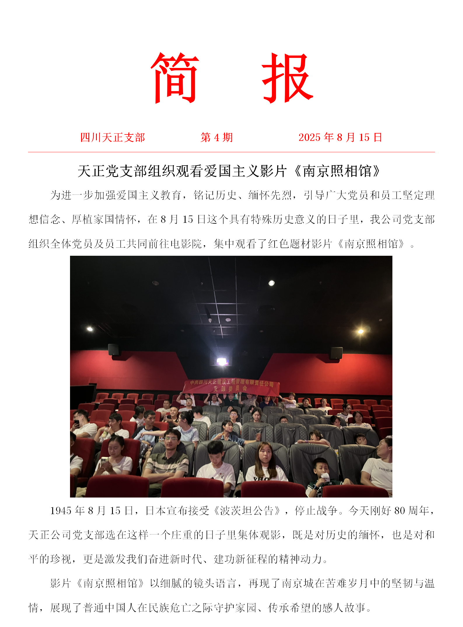 四川天正建设工程管理有限责任公司活动简报——观看爱国主义影片《南京照相馆》